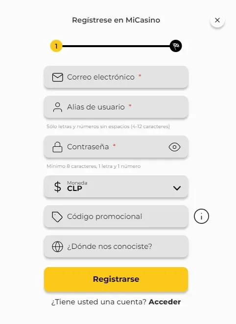 Crear una cuenta en Mi Casino Bolivia